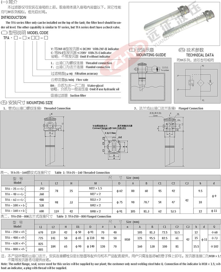)的專 業(yè)廠家,長期以來為冶金、石油、礦山、工程、建筑、塑機、化工、機床、交通等行業(yè)的液壓設(shè)備提供配套,同時為引進設(shè)備提供高品質(zhì)的國產(chǎn)化備件。今天遠(yuǎn)征主講TFA系列吸油過濾器(新型),詳情請看下圖: